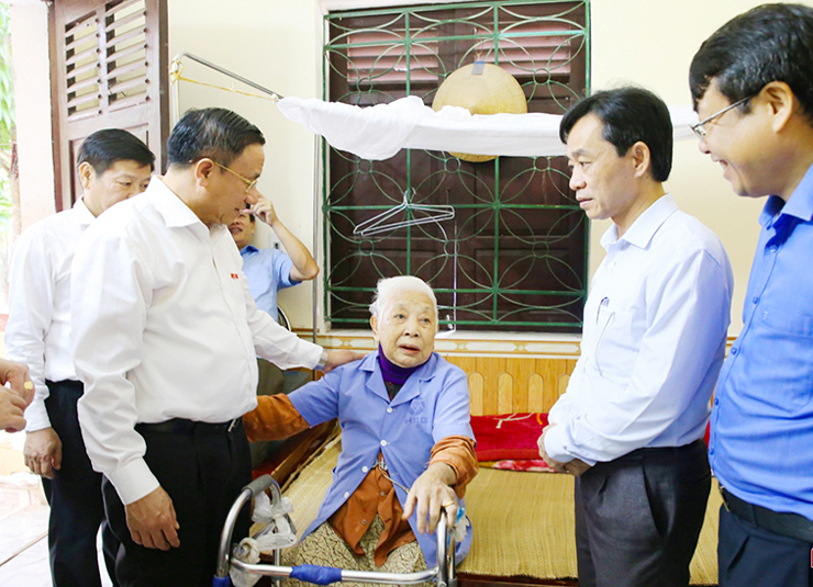 Phó Bí thư Thường trực Tỉnh ủy thăm hỏi Mẹ Việt Nam anh hùng Đậu Thị Minh (84 tuổi) ở xã Cẩm Thành...