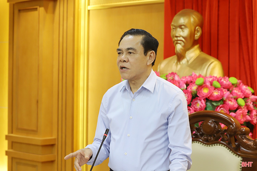 Phó Bí thư Tỉnh ủy, Chủ tịch UBND tỉnh Võ Trọng Hải phát biểu tại cuộc làm việc (ảnh Báo Hà Tĩnh)