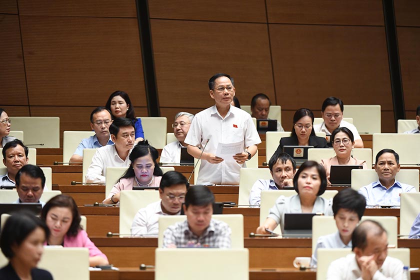 Phó Trưởng đoàn ĐBQH tỉnh Trần Đình Gia thảo luận tại hội trường chiều 18/6