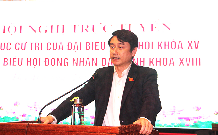 Thay mặt Đoàn Đại biểu Quốc hội tỉnh, đại biểu Quốc hội Lê Anh Tuấn tiếp thu các ý kiến, kiến nghị của cử tri gửi đến Quốc hội, Chính Phủ.