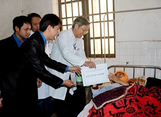 | Tặng quà cho bệnh nhân Đặng Đình Đơn ( xã Thạch Châu, Lộc Hà), đang điều trị tại bệnh viện tỉnh |