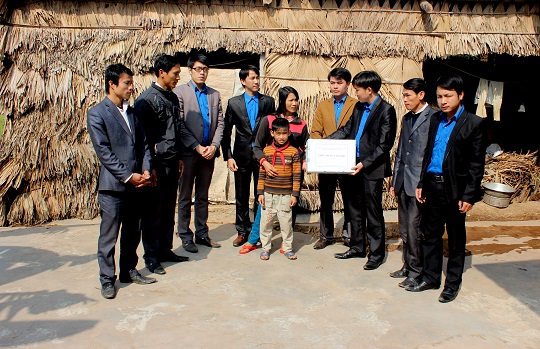 | Tặng quà cho gia đình em Nguyễn Hoàng Trung, trẻ mồ côi, mẹ tàn tật tại xã Bắc Sơn (Thạch Hà) |
