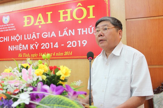| Đồng chí Lê Mạnh Hùng- Chủ tịch Hội Luật gia tỉnh phát biểu tại kỳ họp |