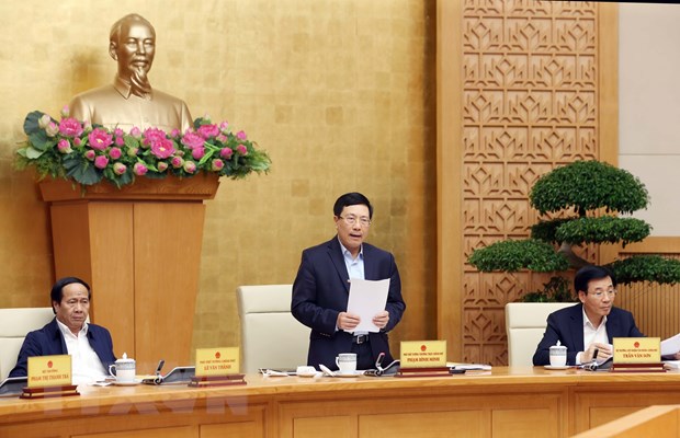 Phó Thủ tướng Thường trực Chính phủ Phạm Bình Minh phát biể u kết luận tại Hội nghị (TTXVN)