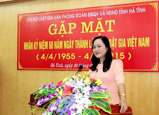 Phát biểu tại cuộc gặp mặt, đồng chí Nguyễn Thị Nữ Y - Phó Chủ tịch HĐND tỉnh chúc mừng toàn thể hội viên chi Hội nhân kỷ niệm 60 năm ngày thành lập Hội Luật gia Việt Nam. Đồng thời, đồng chí mong muốn thời gian tới chi Hội Luật gia Văn phòng Đoàn ĐBQH và HĐND tỉnh tiếp tục tuyên truyền đường lối, chủ trương của Đảng, chính sách và pháp luật của Nhà nước; tham gia góp ý vào các dự thảo Luật, Bộ Luật Quốc hội đang lấy ý kiến; tiếp tục đẩy mạnh công tác xây dựng pháp luật, tư vấn pháp luật, trợ giúp pháp lý cho người nghèo, các đối tượng chính sách; tiếp tục củng cố tổ chức, đổi mới hình thức, nội dung tuyên truyền và thường xuyên có những lớp bồi dưỡng kiến thức mới về pháp luật cho các thành viên của hội, nhất là hội viên trẻ…