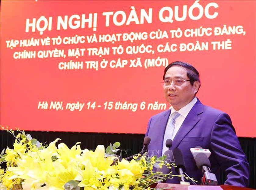 Thủ tướng nhấn mạnh, việc sắp xếp tổ chức bộ máy của hệ thống chính trị và tổ chức chính quyền địa phương 2 cấp là “cuộc cách mạng”, do đó phải quyết tâm, quyết liệt và đồng lòng, đồng chí hướng, đồng bộ, đồng loạt, đồng thời. Đã là “cuộc cách mạng” thì sẽ có thuận lợi, song cũng không ít khó khăn, vướng mắc, việc chuyển trạng thái thường có độ trễ, cần thời gian để thích ứng, thích nghi. Do đó, việc thực hiện sắp xếp tổ chức bộ máy của hệ thống chính trị không cầu toàn, không nóng vội mà phải kiên trì, kiên định, vừa làm, vừa rút kinh nghiệm, mở rộng dần; đã làm phải chắc thắng, không làm nửa vời và trên tinh thần thần tốc, táo bạo...