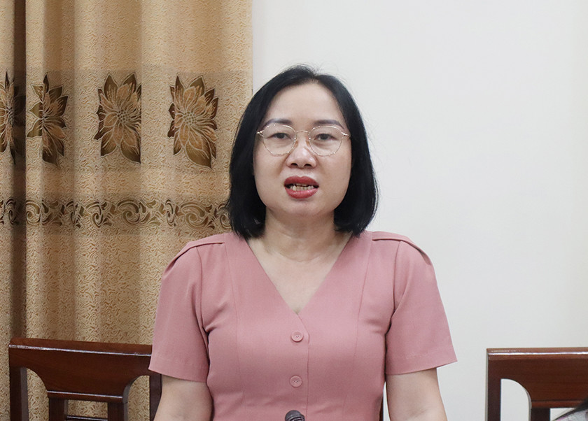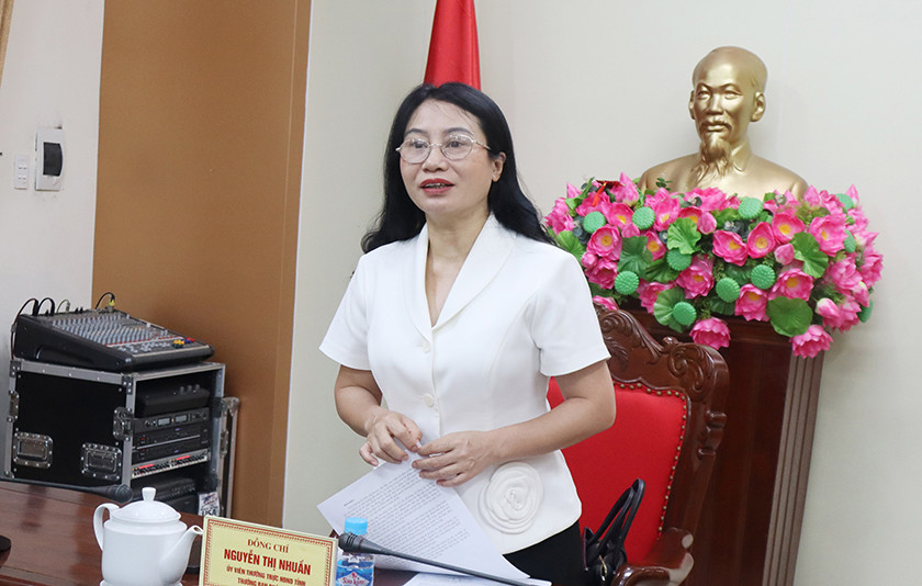 Trưởng ban Pháp chế HĐND tỉnh Nguyễn Thị Nhuần kết luận tại cuộc họp. |