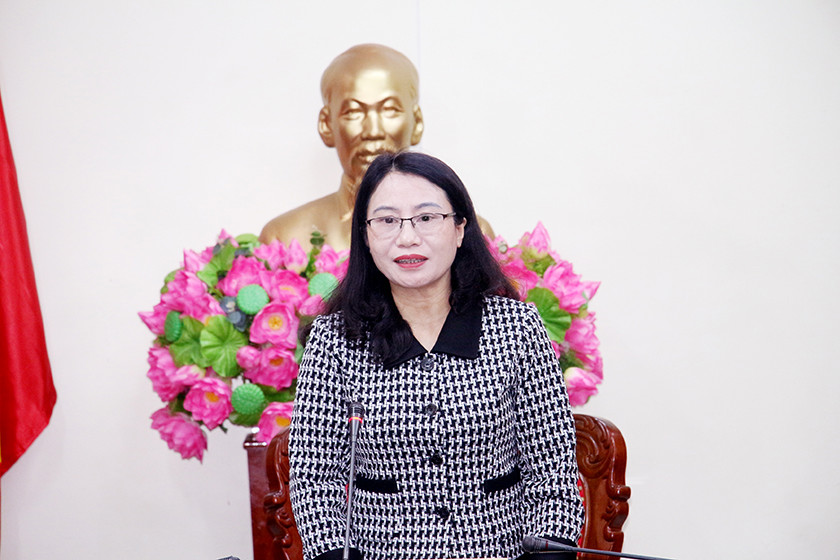 Trưởng ban Pháp chế HĐND tỉnh Nguyễn Thị Nhuần chủ trì cuộc làm việc.