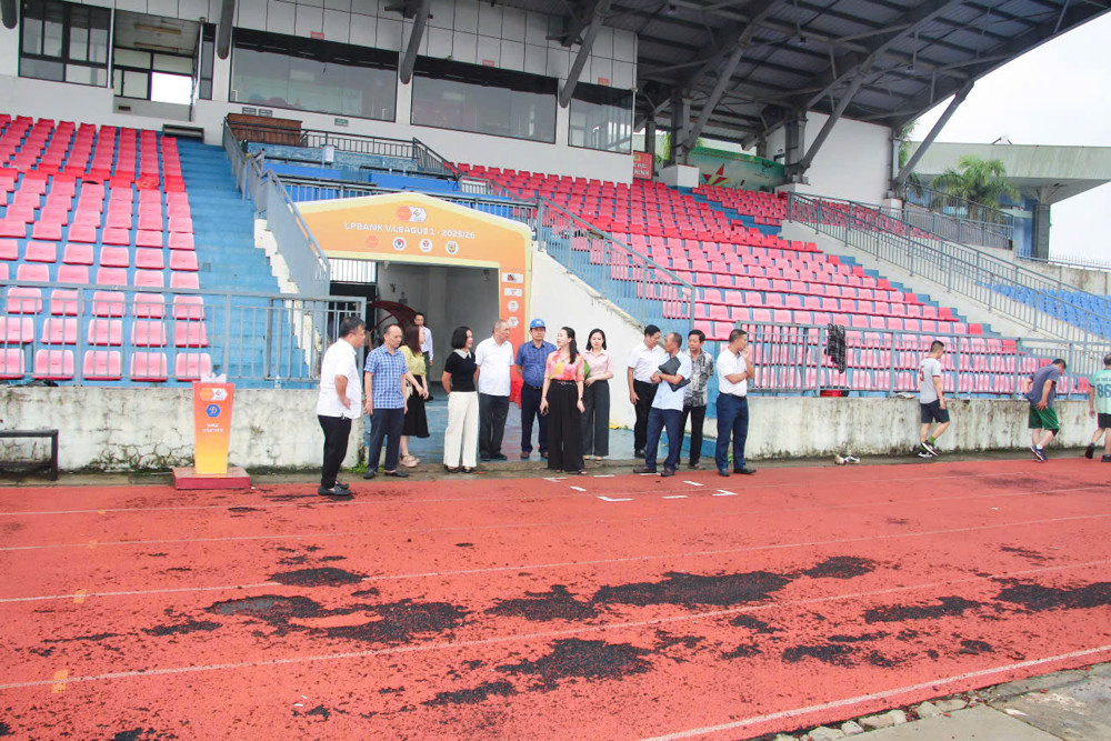 | Đoàn khảo sát cơ sở vật chất của Trung tâm Huấn luyện và Thi đấu thể dục thể thao |