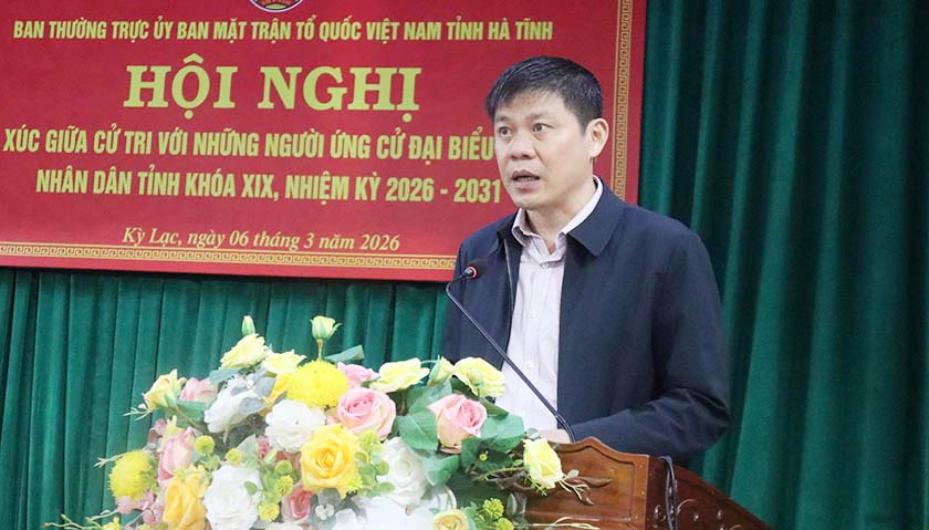 Sáng 6/3, tại xã Kỳ Lạc, Ban Thường trực Ủy ban MTTQ tỉnh tổ chức hội nghị tiếp xúc giữa cử tri với những người ứng cử đại biểu HĐND tỉnh khóa XIX, nhiệm kỳ 2026 – 2031 tại đơn vị bầu cử HĐND tỉnh số 2 (gồm các xã Kỳ Lạc, Kỳ Thượng, Kỳ Khang, Kỳ Văn, Kỳ Anh, Kỳ Xuân)