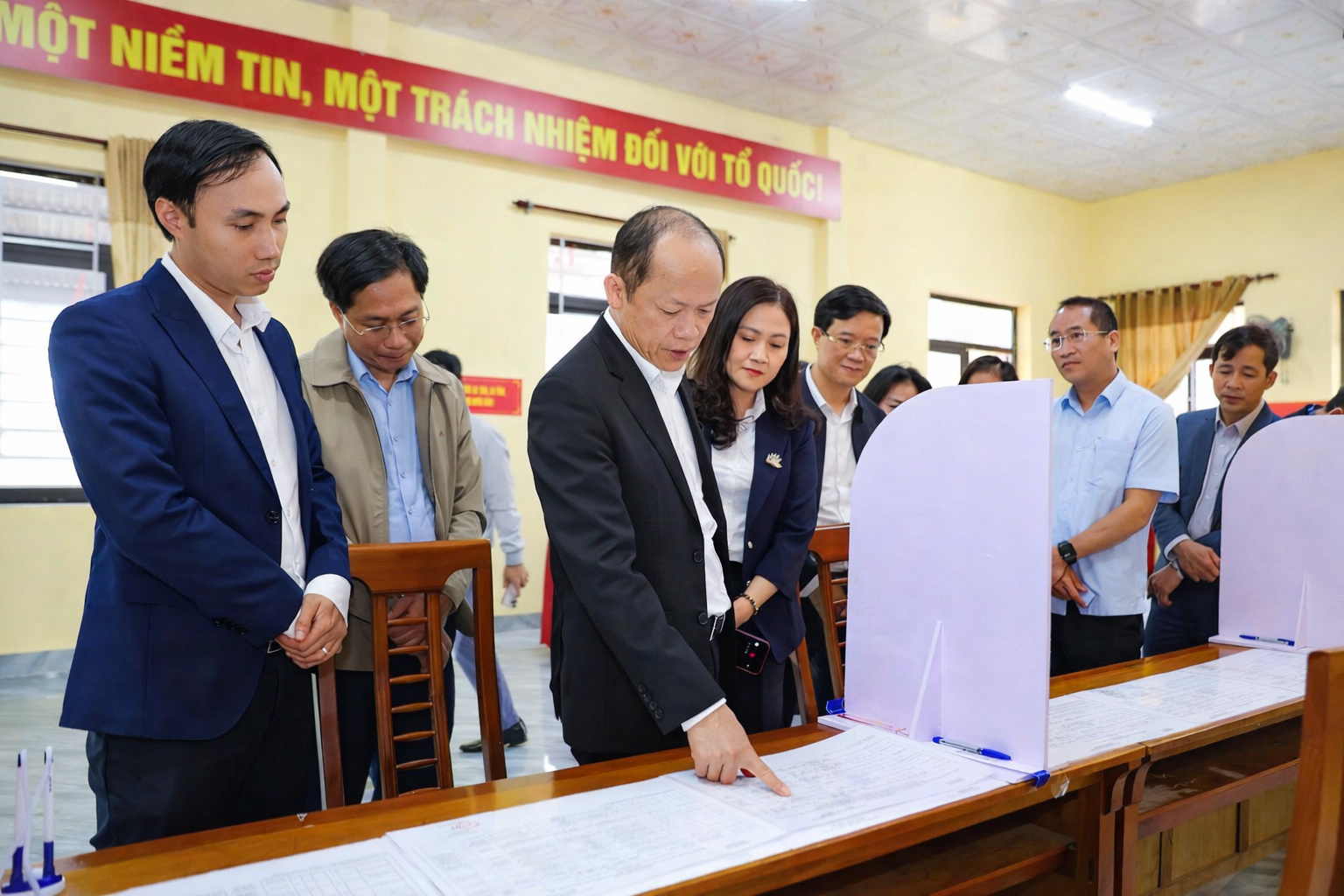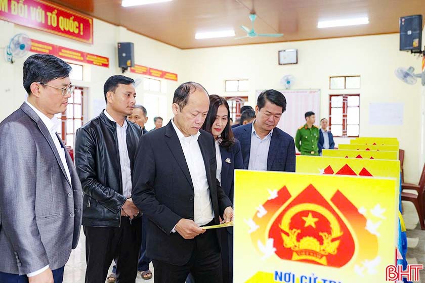 Đồng chí Nguyễn Hồng Lĩnh kiểm tra khu vực bỏ phiếu số 6 (thôn 9 - thôn 12), xã Cẩm Xuyên |
