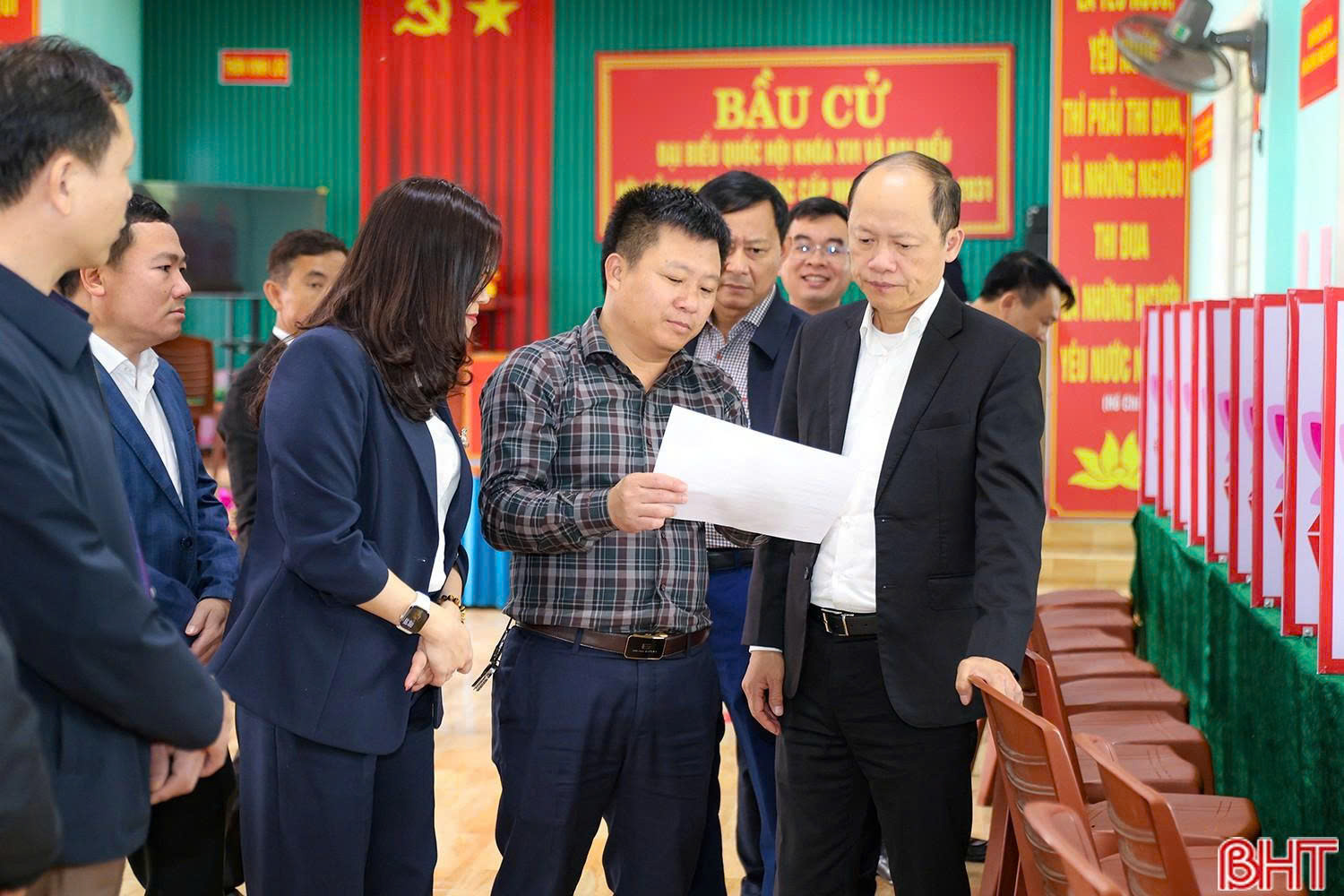 Đoàn kiểm tra công tác chuẩn bị tại khu vực bỏ phiếu số 11 (thôn Yên Thọ), xã Thiên Cầm |