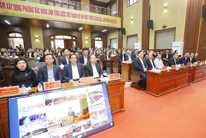 Hội nghị được thực hiện bằng hình thức trực tiếp kết hợp với trực tuyến từ hội trường phường Bắc Hồng Lĩnh đến hội trường các phường, xã.