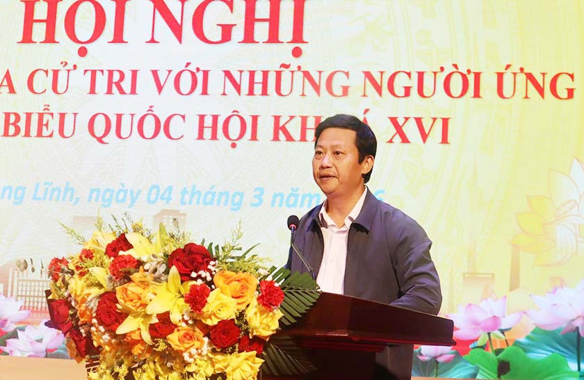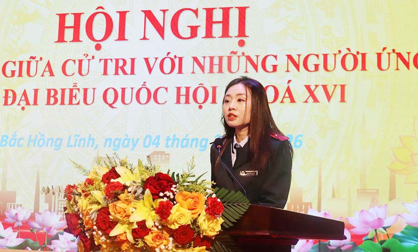 Sáng 4/3, tại phường Bắc Hồng Lĩnh, Ban Thường trực Ủy ban MTTQ tỉnh Hà Tĩnh tổ chức hội nghị tiếp xúc cử tri của những người ứng cử ĐBQH khóa XVI và đại biểu HĐND tỉnh khóa XIX tại đơn vị bầu cử Quốc hội số 3, gồm các phường, xã: Bắc Hồng Lĩnh, Nam Hồng Lĩnh, Đức Thịnh, Trường Lưu, Đức Minh, Đức Thọ, Đức Đồng, Đức Quang, Vũ Quang, Mai Hoa, Thượng Đức, Hương Sơn, Sơn Tây, Sơn Giang, Sơn Tiến, Sơn Hồng, Sơn Kim 1, Sơn Kim 2, Kim Hoa, Tứ Mỹ, Hương Khê, Hương Phố, Hương Đô, Hà Linh, Hương Bình, Phúc Trạch, Hương Xuân