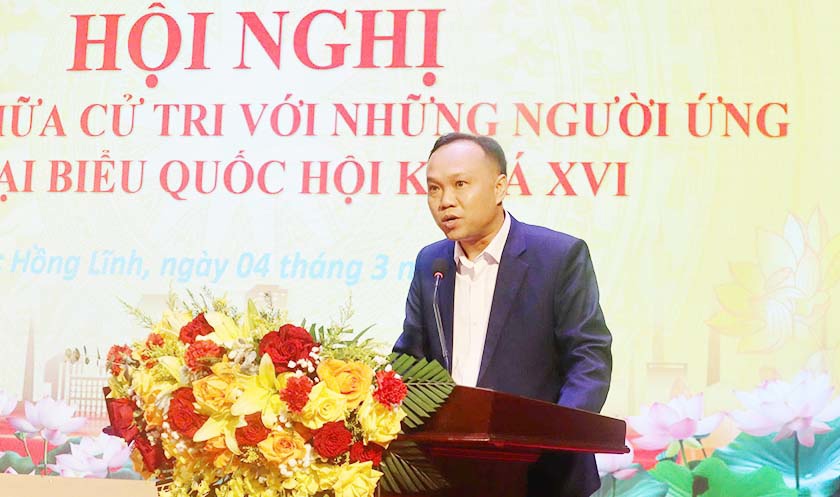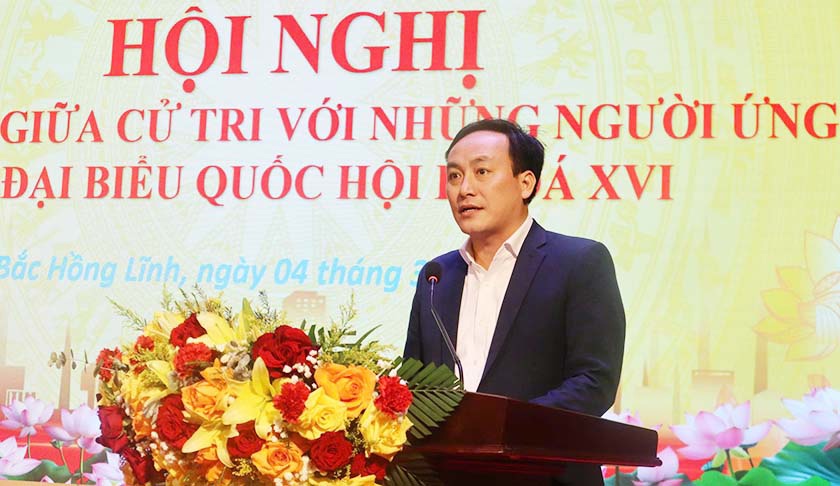 Ông khẳng định, nếu được cử tri tín nhiệm bầu làm ĐBQH khóa XVI, sẽ nỗ lực cùng tập thể Ban Chấp hành Trung ương, Bộ Chính trị, Ban Bí thư lãnh đạo, chỉ đạo thực hiện thắng lợi các nghị quyết của Đảng; góp phần xây dựng Hà Tĩnh phát triển nhanh, bền vững theo hướng công nghiệp hiện đại, tăng trưởng xanh, nâng cao đời sống Nhân dân.
