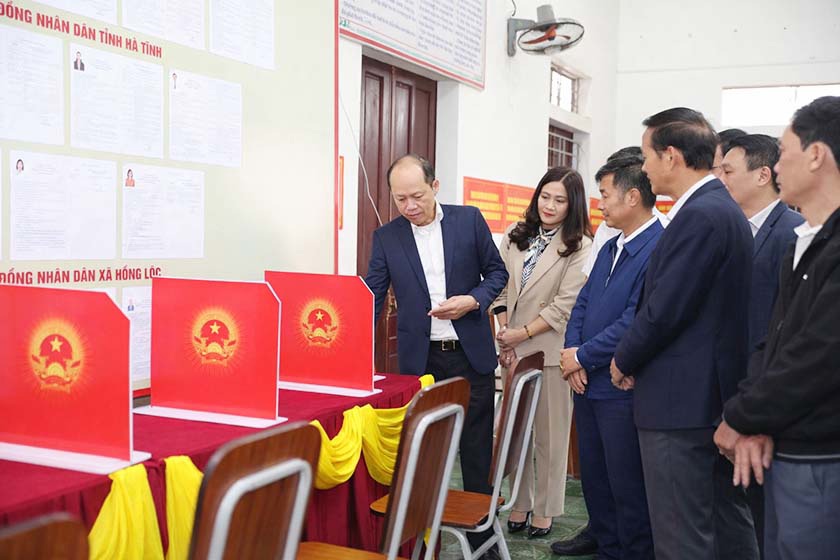 Sáng 12/3, đồng chí Nguyễn Hồng Lĩnh - Phó Bí thư Thường trực Tỉnh ủy, Chủ tịch HĐND tỉnh, Chủ tịch Ủy ban Bầu cử tỉnh Hà Tĩnh cùng đoàn công tác đã đi kiểm tra công tác chuẩn bị bầu cử tại các xã Tùng Lộc, Hồng Lộc và Cổ Đạm (Nghi Xuân)