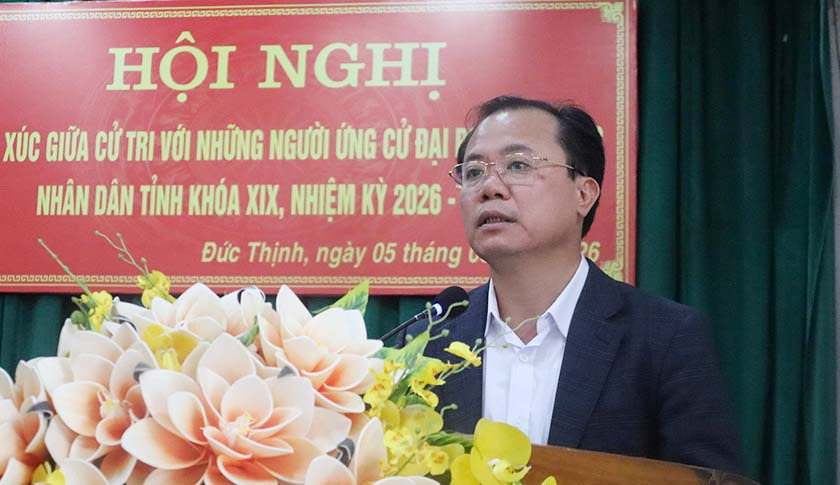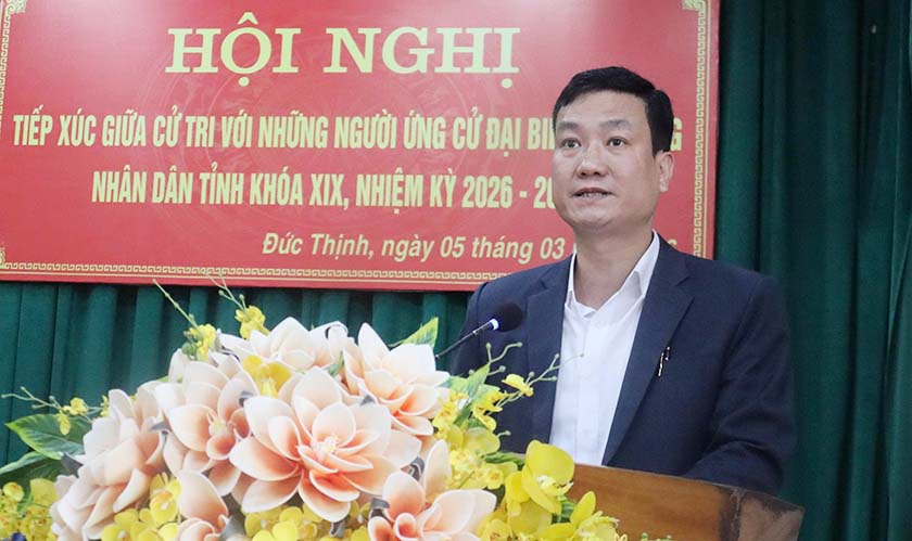 Chiều 5/3, tại xã Đức Thịnh, Ban Thường trực Ủy ban MTTQ tỉnh tổ chức hội nghị tiếp xúc giữa cử tri với những người ứng cử đại biểu HĐND tỉnh khóa XIX, nhiệm kỳ 2026 – 2031 tại đơn vị bầu cử số 9 (gồm Bắc Hồng Lĩnh, Nam Hồng Lĩnh, Đức Thịnh, Trường Lưu)