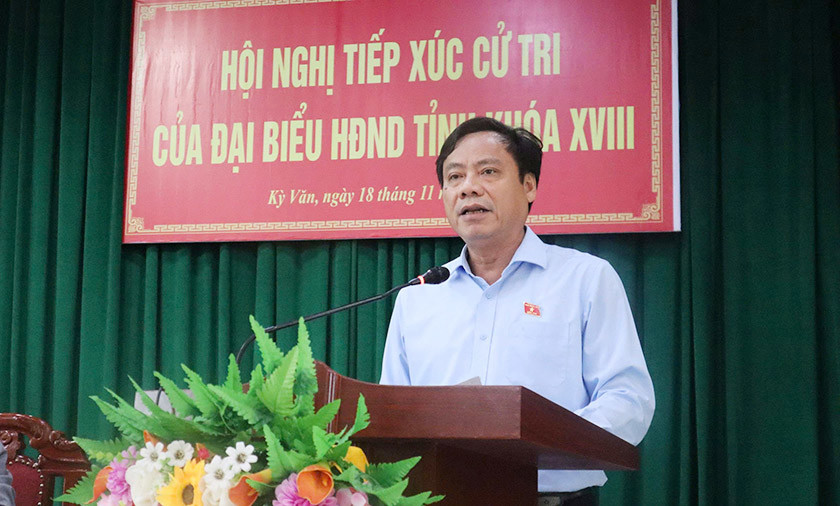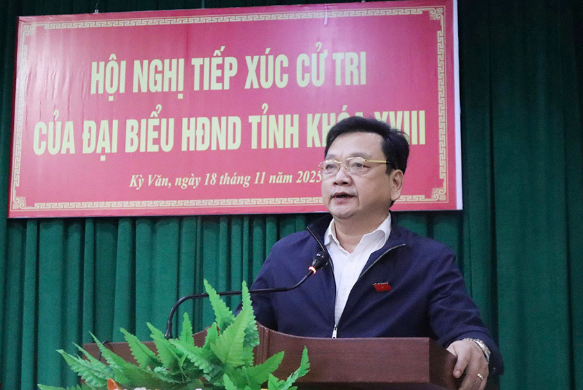 Mở đầu hội nghị tiếp xúc cử tri, đại diện Tổ đại biểu HĐND tỉnh Nguyễn Tiến Hùng đã báo cáo tình hình KT-XH, QP-AN năm 2025 và kế hoạch phát triển KT-XH, QP-AN năm 2026; dự kiến những nội dung chủ yếu kỳ họp cuối năm 2025 của HĐND tỉnh khóa XVIII.