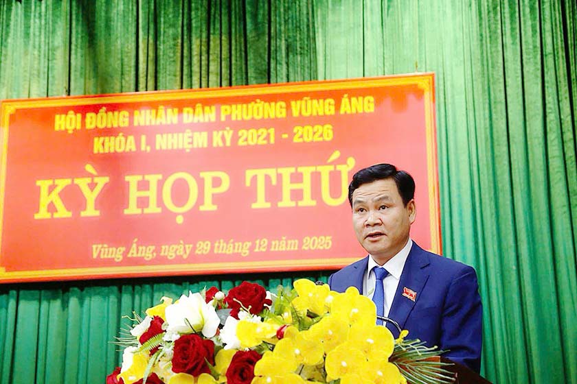Tại kỳ họp, các đại biểu đã nghe báo cáo tóm tắt kết quả thực hiện nhiệm vụ phát triển kinh tế – xã hội, bảo đảm quốc phòng – an ninh năm 2025; kế hoạch phát triển năm 2026. Theo đó, năm 2025, mặc dù gặp nhiều khó khăn do thiên tai, biến động kinh tế và yêu cầu vận hành mô hình chính quyền địa phương hai cấp, song với sự chỉ đạo quyết liệt của cấp ủy, chính quyền và sự đồng thuận của Nhân dân, phường Vũng Áng đã đạt được nhiều kết quả tích cực. Kinh tế tiếp tục tăng trưởng khá, tổng giá trị sản phẩm đạt gần 140 nghìn tỷ đồng, tốc độ tăng trưởng 9,6%, thu nhập bình quân đầu người đạt trên 67 triệu đồng/năm. Công nghiệp – xây dựng giữ vai trò chủ lực; thương mại, dịch vụ phát triển ổn định; thu ngân sách đạt và vượt kế hoạch. Các lĩnh vực văn hóa – xã hội, giáo dục, y tế, an sinh xã hội được quan tâm; quốc phòng – an ninh được giữ vững; cải cách hành chính, chuyển đổi số tiếp tục được đẩy mạnh.