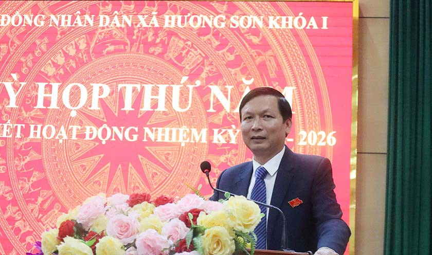 Phát biểu tại hội nghị, đồng chí Lương Quốc Tuấn – Bí thư Đảng ủy, Chủ tịch HĐND xã Hương Sơn ghi nhận và đánh giá cao những kết quả HĐND xã đạt được trong nhiệm kỳ 2021–2026, nhất là trong bối cảnh thực hiện sắp xếp đơn vị hành chính và triển khai mô hình chính quyền địa phương 2 cấp. Hoạt động của HĐND ngày càng nền nếp, hiệu lực, hiệu quả, cơ bản đáp ứng yêu cầu nhiệm vụ và kỳ vọng của cử tri, Nhân dân.