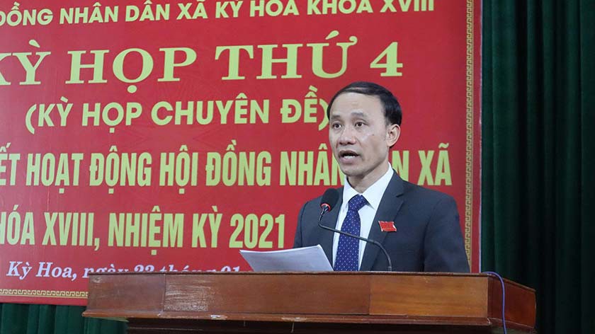 Chủ tịch UBND xã Kỳ Hoa Võ Tá Cương phát biểu tại kỳ họp |