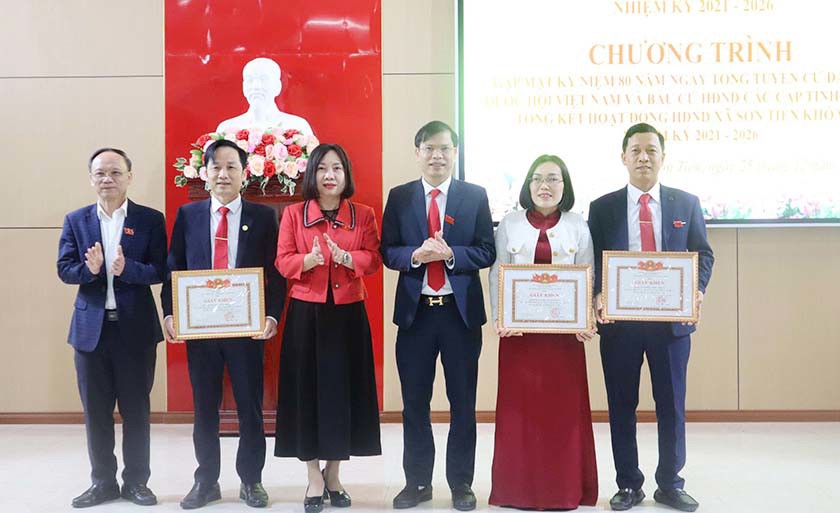 Lãnh đạo trao tặng bằng khen tập thể và các nhân trong nhiệm kỳ2021–2026, HĐND xã Sơn Tiến |
