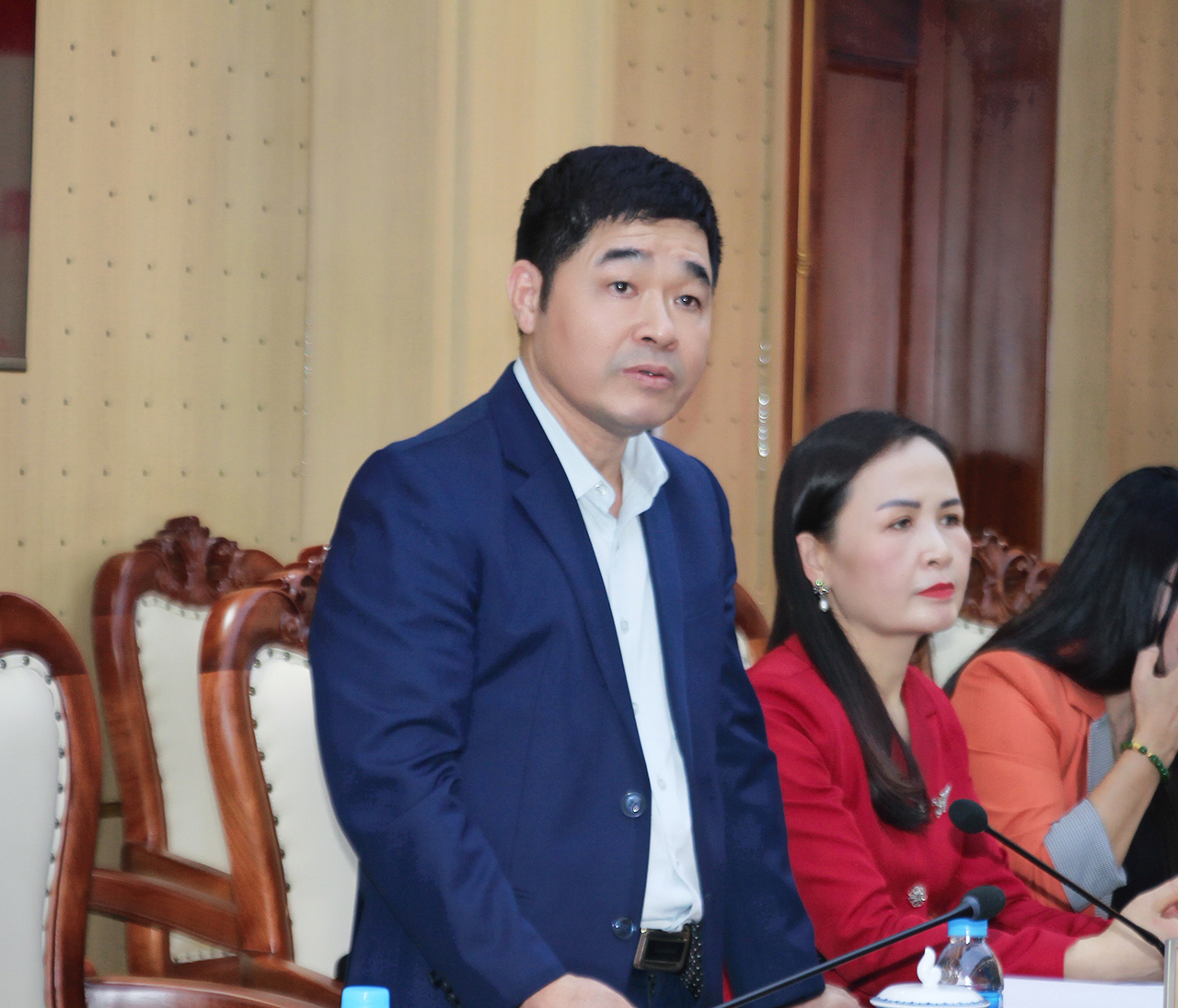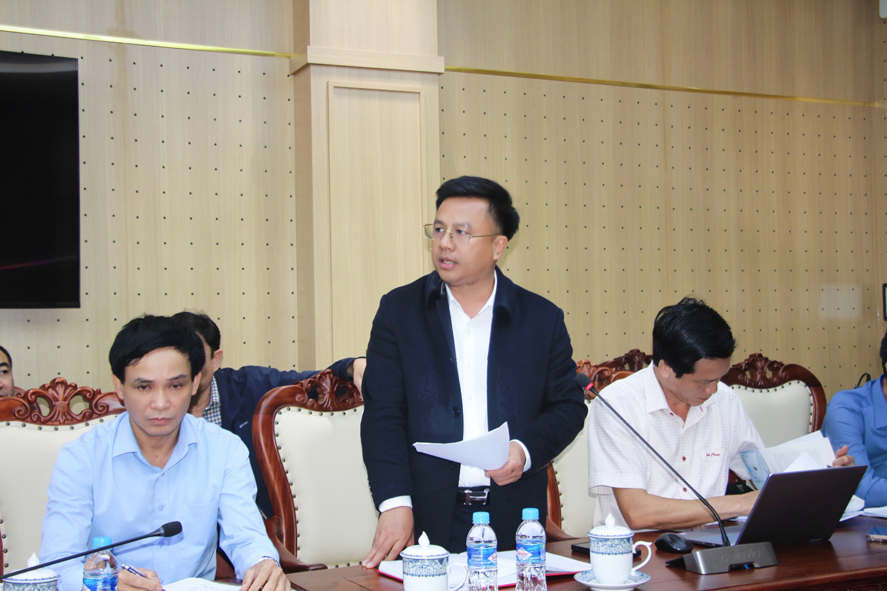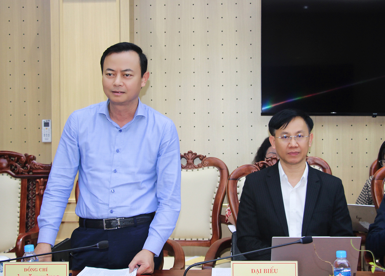 Đồng chí Hà Văn Hùng, Ủy viên Ban Thường vụ, Trưởng ban Tuyên giáo và Dân vận Tỉnh ủy phát biểu tại cuộc làm việc. |