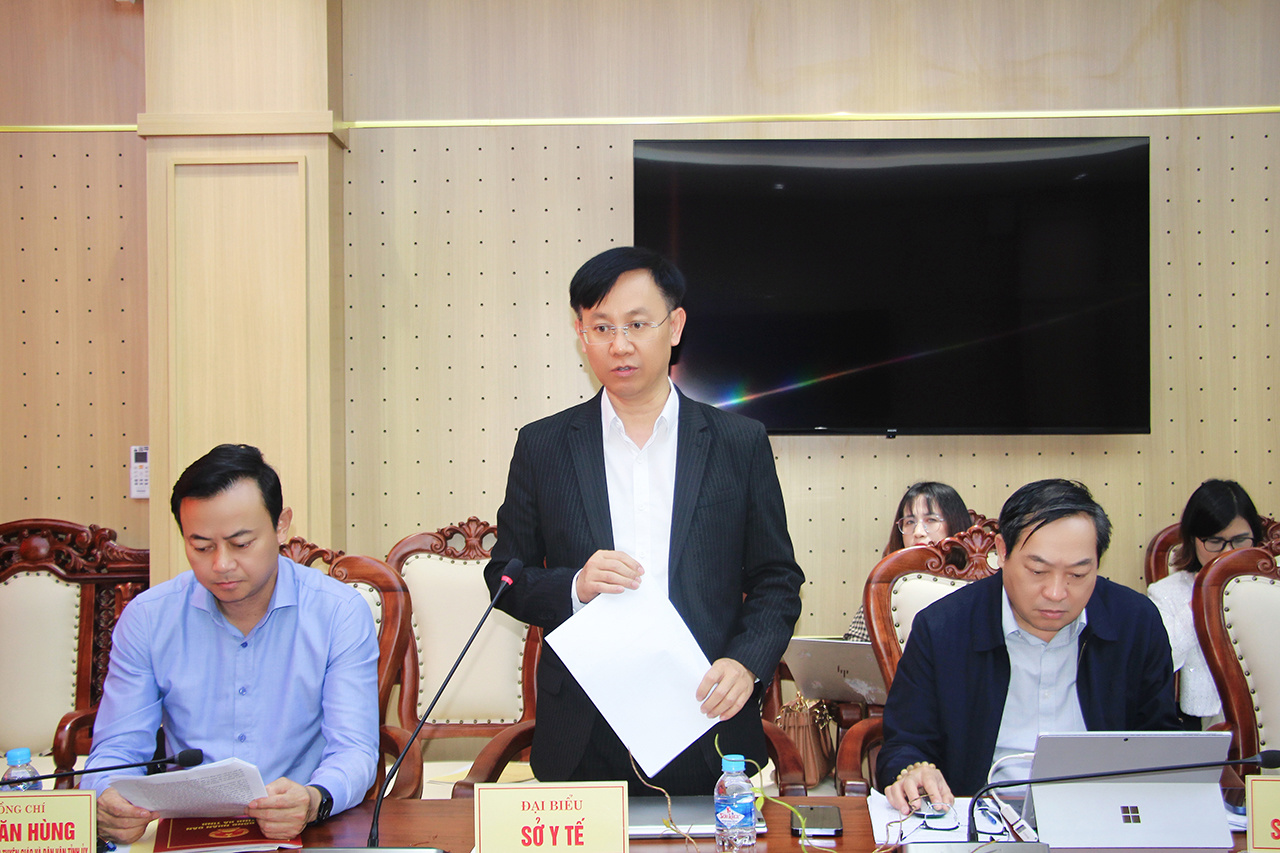 Phó Giám đốc Sở Y tế Bùi Quốc Hùng báo cáo tình hình thực hiện Nghị định số 05/2023/NĐ-CP ngày 15/02/2023 của Chính phủ sửa đổi, bổ sung một số điều của Nghị định số 56/2011/NĐ-CP ngày 04/7/2011 quy định chế độ phụ cấp ưu đãi theo nghề đối với công chức, viên chức công tác tại các cơ sở y tế công lập trên địa bàn tỉnh. |