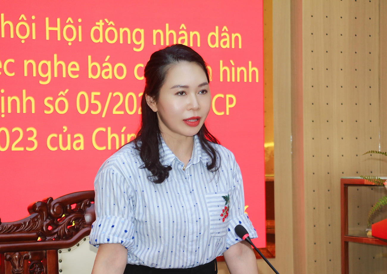 Thành viên Ban Văn hóa - Xã hội Hội đồng nhân dân tỉnh, Chủ tịch Hội Liên hiệp Phụ nữ tỉnh Nguyễn Thị Lệ Hà: Đề nghị Sở Y tế cần có giải pháp cụ thể, phù hợp, đảm bảo quy định để đảm bảo việc chi trả chế độ theo đúng Nghị định. |