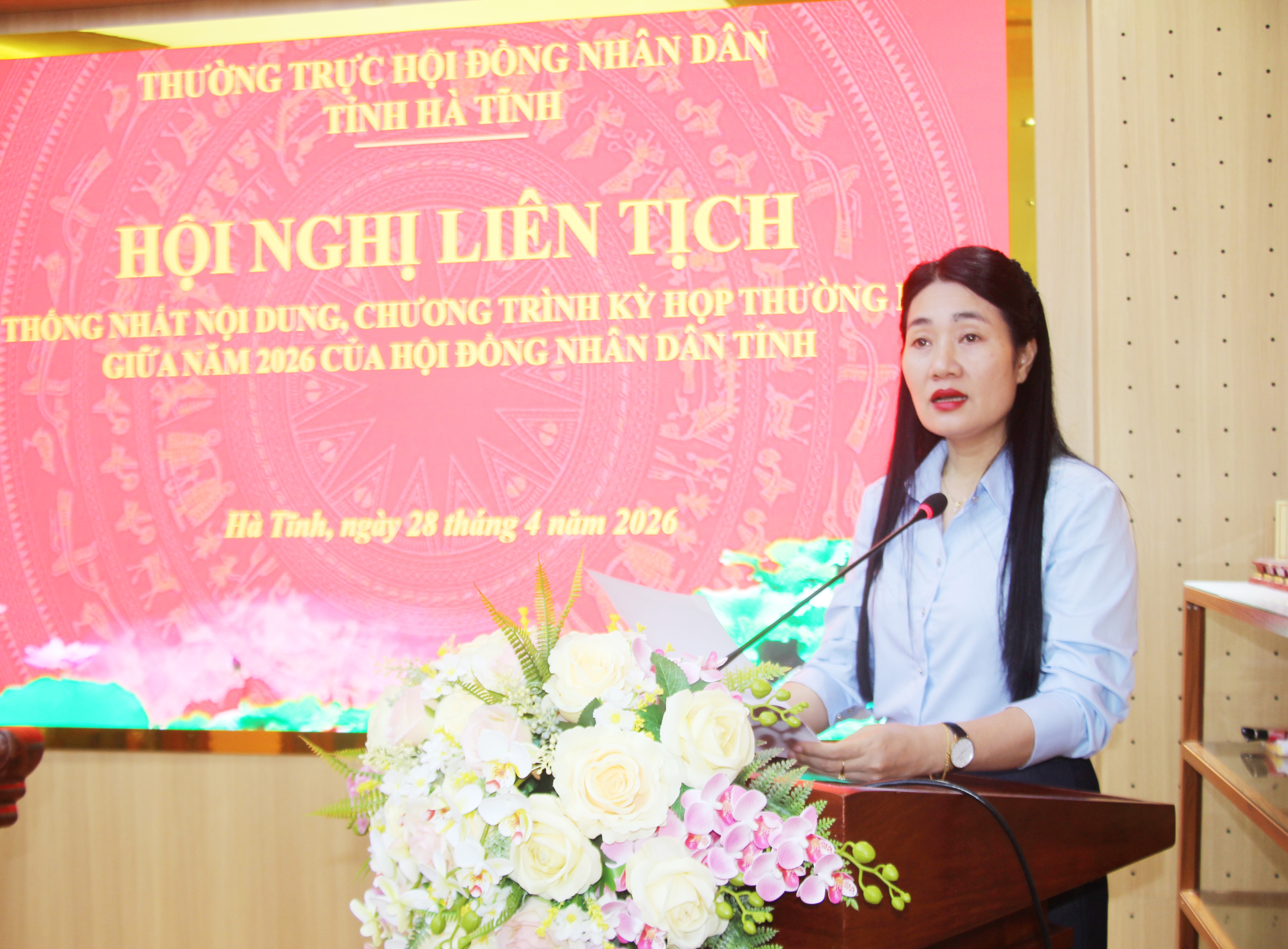 Phó Chủ tịch Hội đồng nhân dân tỉnh Nguyễn Thị Việt Hà báo cáo dự thảo kế hoạch Kỳ họp thường lệ giữa năm 2026