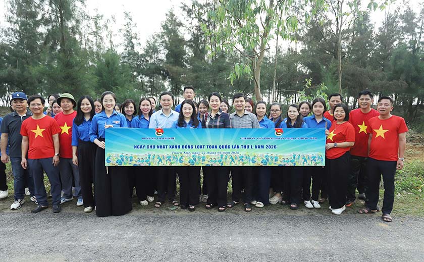 Chào mừng thành công bầu cử ĐBQH khóa XVI và đại biểu HĐND các cấp nhiệm kỳ 2026 - 2031, hướng tới kỷ niệm 95 năm Ngày thành lập Đoàn TNCS Hồ Chí Minh, sáng 22/3, Chi đoàn Văn phòng Đoàn ĐBQH và HĐND tỉnh phối hợp với Đoàn xã Thạch Khê tổ chức trồng cây trên trục đường vào Khu du lịch Quỳnh Viên