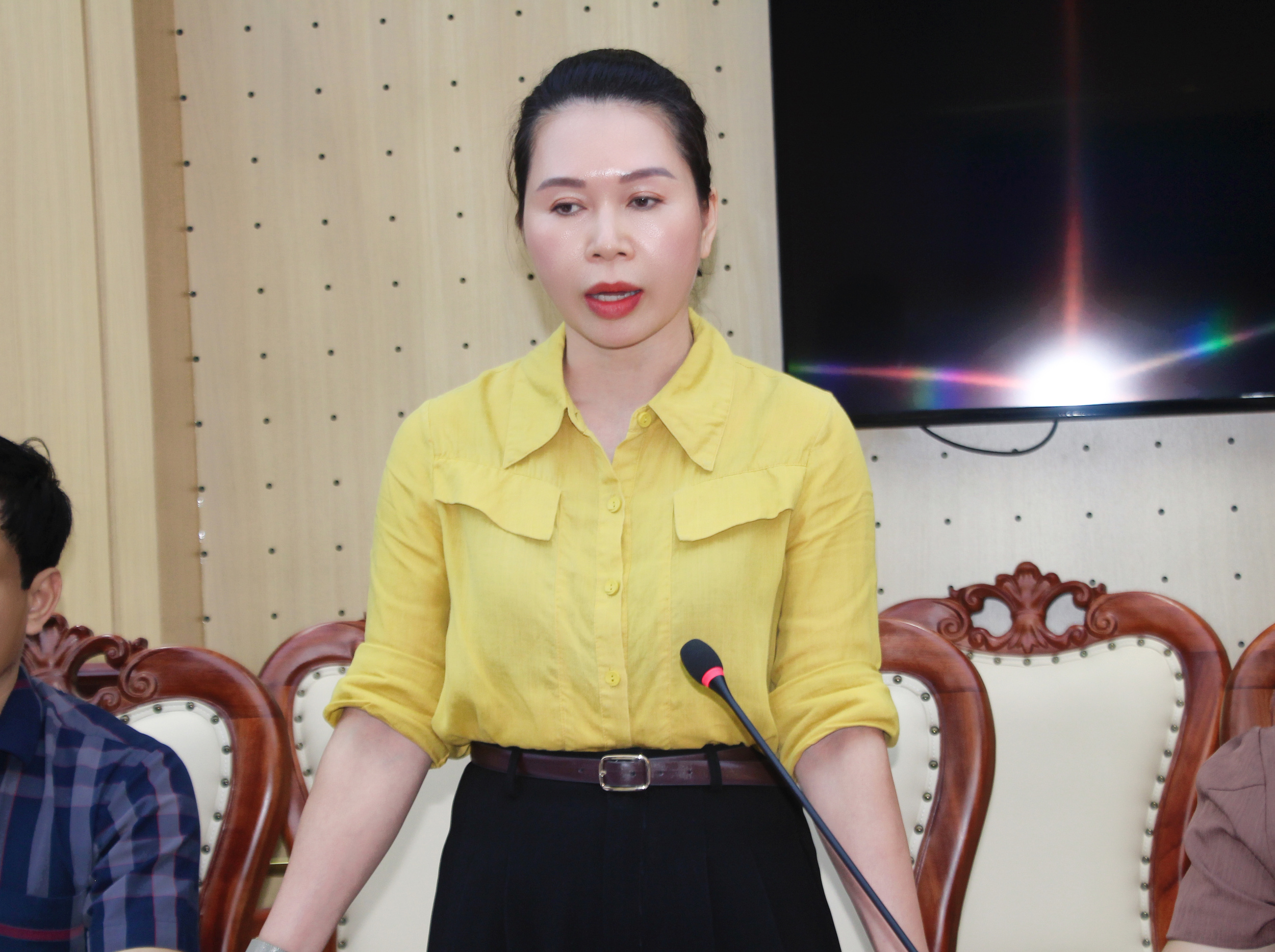 | Đồng chí Nguyễn Thị Thúy Nga, Ủy viên Thường trực, Trưởng ban Kinh tế - Ngân sách Hội đồng nhân dân tỉnh phát biểu |