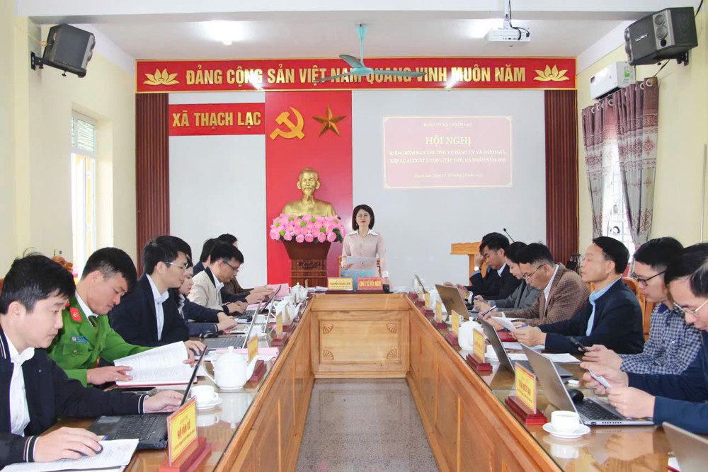 Tại hội nghị, Phó Bí thư Thường trực Đảng ủy xã Thạch Lạc Trương Đình Dũng đã báo cáo kiểm điểm tập thể Ban Thường vụ Đảng ủy xã năm 2025. Theo đó, về công tác xây dựng Đảng, hệ thống chính trị, trong năm, Ban Thường vụ Đảng ủy xã đã quan tâm đúng mức đến công tác chính trị tư tưởng; duy trì nền nếp sinh hoạt, giữ vững nguyên tắc tập trung dân chủ, tự phê bình và phê bình. Công tác đào tạo, bồi dưỡng, bố trí, sử dụng cán bộ được chú trọng; công tác kiểm tra, giám sát có nhiều chuyển biến; hoạt động của Ủy ban MTTQ và các đoàn thể ngày càng sát dân, góp phần giải quyết kịp thời nhiều kiến nghị, nguyện vọng chính đáng của Nhân dân. Công tác tổ chức, cán bộ, đảng viên, phòng chống tham nhũng, tiêu cực; công tác kiểm tra, giám sát được thực hiện nghiêm túc.