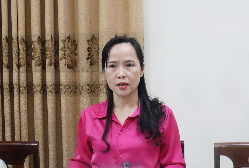 Trưởng phòng Công tác Hội đồng Bùi Thị Hồng Sâm đóng góp ý kiến tại cuộc họp |