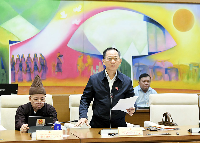 Phó trưởng đoàn Phụ trách Đoàn ĐBQH tỉnh Trần Đình Gia tham gia thảo luận |