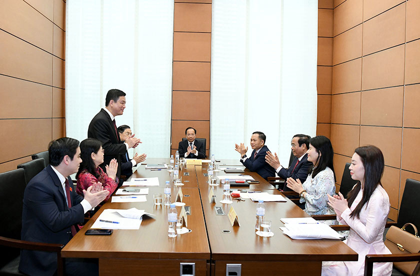 Các đại biểu Quốc hội trong Đoàn ĐBQH tỉnh Hà Tĩnh tặng hoa chúc mừng các đồng chí lãnh đạo Đoàn