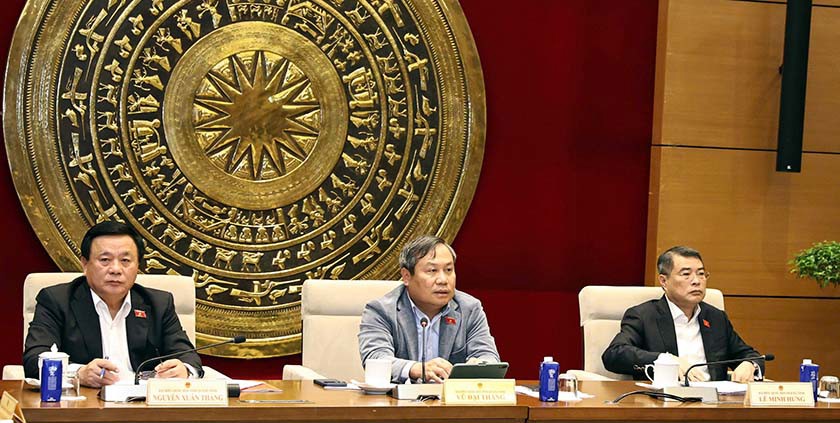 Các đại biểu tham gia thảo luận về nội dung thể chế và pháp luật đồng bộ, thống nhất, ổn định; xây dựng và hoàn thiện Nhà nước pháp quyền xã hội chủ nghĩa; phân cấp, phân quyền và tổ chức bộ máy; vai trò lãnh đạo, cầm quyền của Đảng trong hệ thống pháp luật và trong điều hành thực tiễn; tinh thần đổi mới tư duy, đổi mới cách làm, đổi mới quản trị quốc gia theo phương châm kiến tạo vì dân.