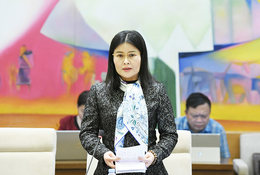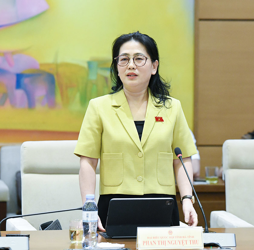 Đại biểu Phan Thị Nguyệt Thu, Chánh án TAND tỉnh phát biểu thảo luận |