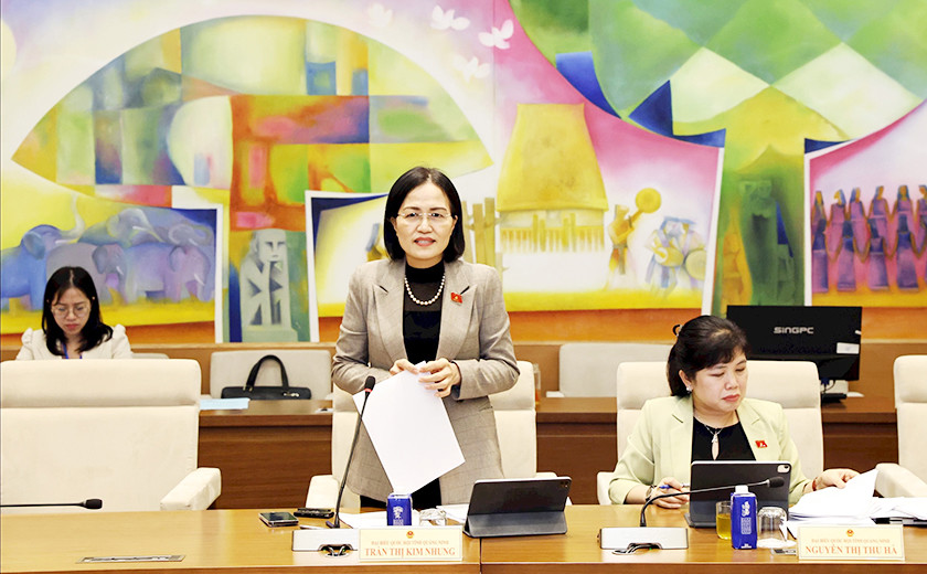 Ủy viên Thường trực Ủy ban pháp luật và Tư pháp của Quốc hội, đại biểu Trần Thị Kim Nhung (Đoàn Quảng Ninh) đề nghị bổ sung quy định về tiền cấp quyền khai thác khoáng sản theo hướng bỏ quy định phê duyệt, quyết toán tiền cấp quyền khai thác khoáng sản. |