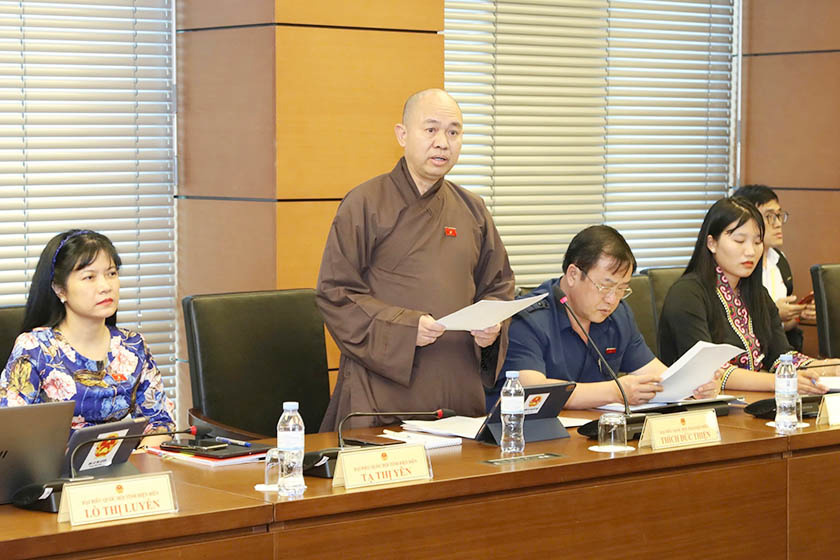 Đại biểu Thích Đức Thiện (Đoàn Vĩnh Long) thảo luận về dự án Luật Tín ngưỡng, tôn giáo