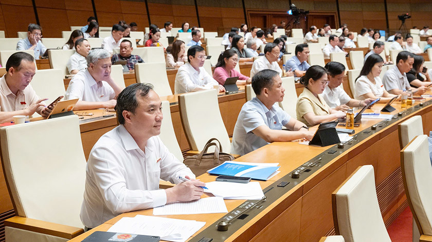 Đoàn ĐBQH tỉnh Hà Tĩnh tham gia thảo luận tại hội trường sáng 13/6. |