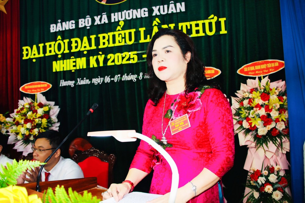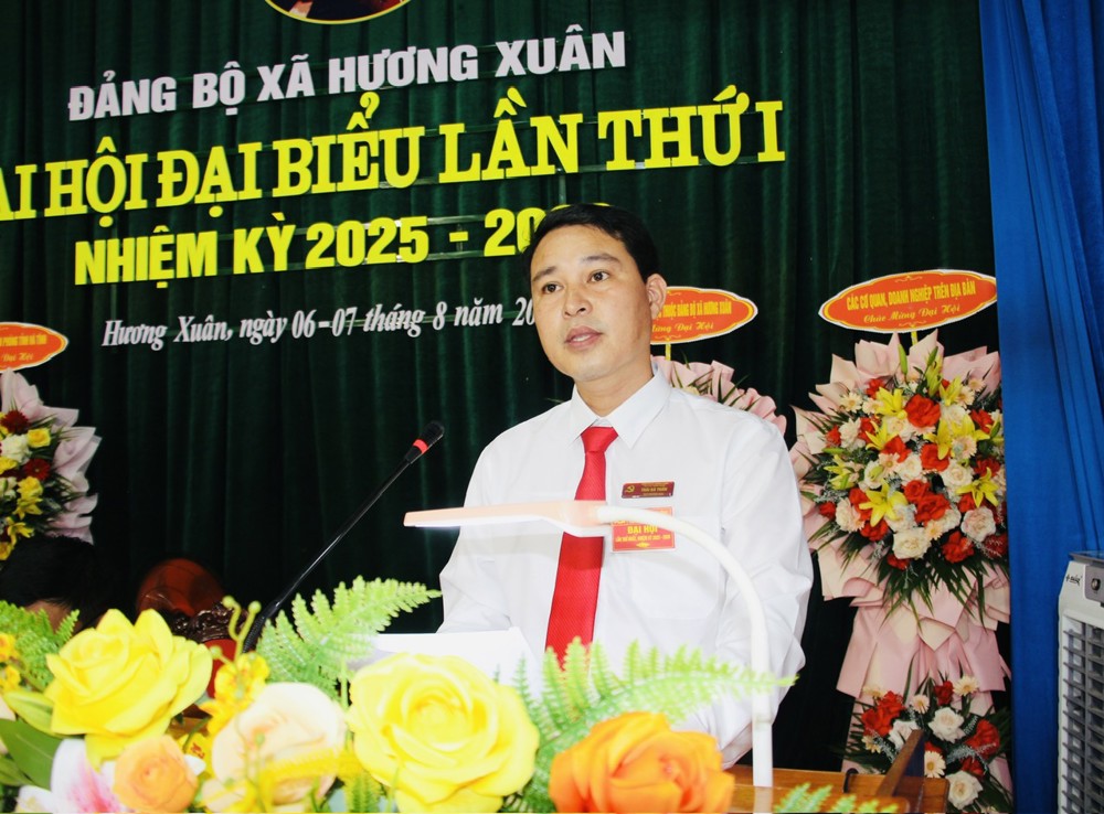 Phát biểu tại Đại hội, Phó Chủ tịch HĐND tỉnh Trần Văn Kỳ yêu cầu Đảng bộ xã Hương Xuân cần tiếp tục tăng cường xây dựng khối đoàn kết, thống nhất trong toàn Đảng bộ, xây dựng đảng trong sạch và vững mạnh. Xây dựng bộ máy chính quyền liêm chính, hoạt động hiệu năng, hiệu lực, hiệu quả. Tăng cường lãnh đạo, chỉ đạo nâng cao chất lượng hoạt động, phát huy vai trò của Hội đồng nhân dân xã, xứng đáng là cơ quan đại diện cho ý chí, nguyện vọng và quyền làm chủ của Nhân dân tại địa phương; tiếp tục đổi mới tổ chức bộ máy, nội dung, phương thức hoạt động của Mặt trận Tổ quốc và các tổ chức chính trị - xã hội, tăng cường củng cố khối đại đoàn kết toàn dân. Đẩy mạnh phát triển sản xuất, ưu tiên phát triển các sản phẩm có lợi thế của địa phương như gỗ nguyên liệu rừng trồng, dược liệu và cây ngắn ngày. Tạo môi trường thuận lợi để kinh tế tư nhân phát triển; tạo điều kiện tối đa cho các hộ kinh doanh, doanh nghiệp nhỏ và vừa khởi nghiệp mở rộng sản xuất kinh doanh…