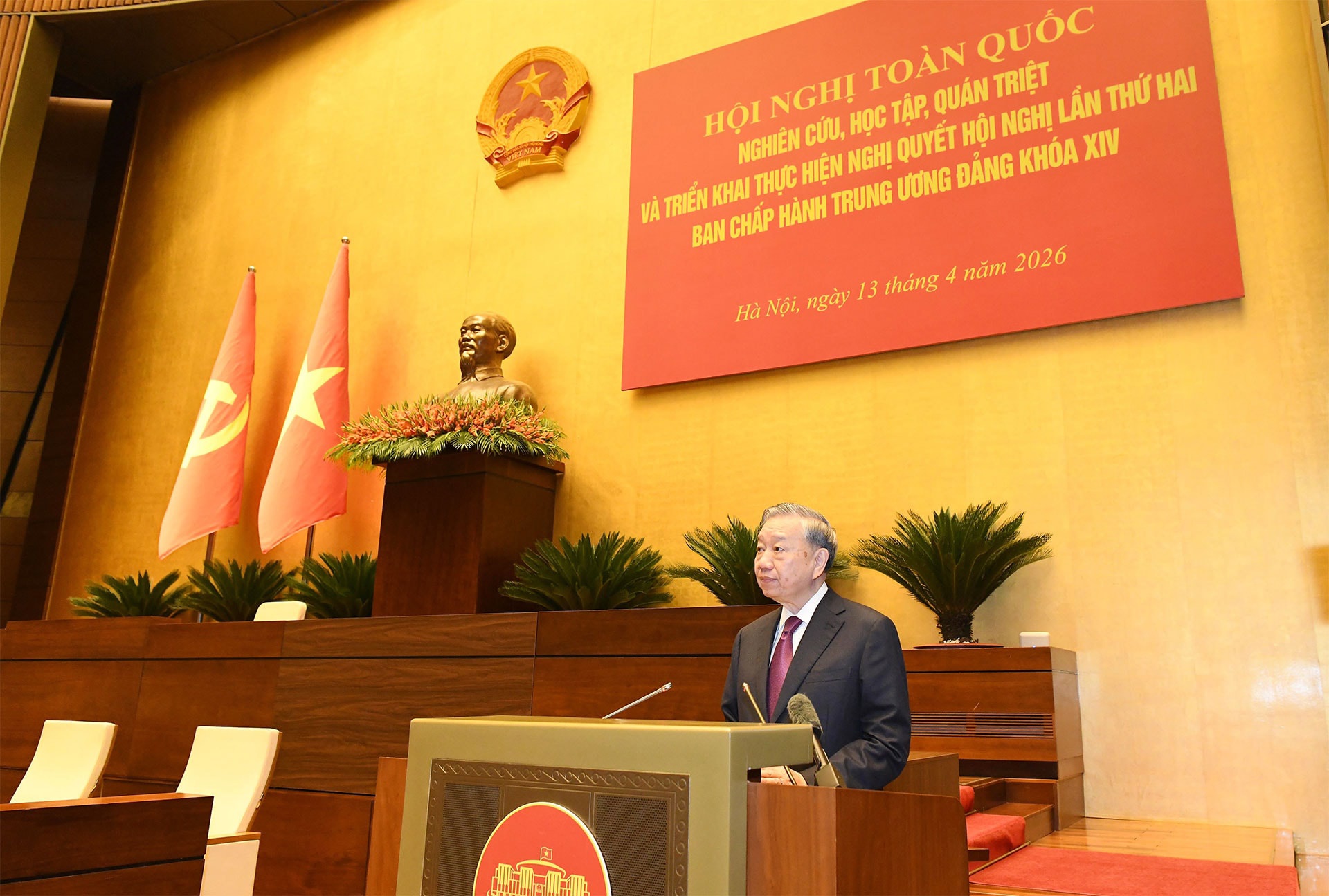 Phát biểu chỉ đạo hội nghị, đồng chí Tô Lâm - Tổng Bí thư, Chủ tịch nước nhấn mạnh, việc quán triệt và triển khai Nghị quyết Hội nghị lần thứ hai, Ban Chấp hành Trung ương Đảng khóa XIV phải được thực hiện với tinh thần quyết tâm cao nhất, hành động quyết liệt, đồng bộ và hiệu quả trong toàn hệ thống chính trị.