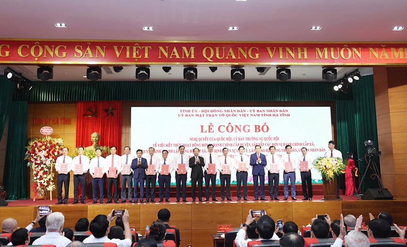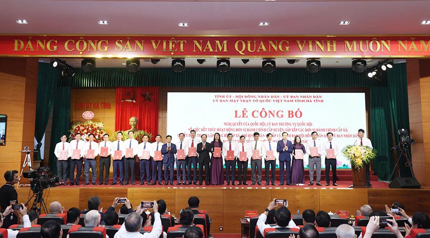 Hà Tĩnh: Lễ công bố các quyết định về sắp xếp ĐVHC, tổ chức bộ máy, cán bộ