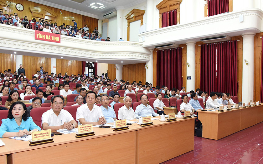 Tham dự tại điểm cầu chính ở Hà Tĩnh có Bí thư Tỉnh ủy Nguyễn Duy Lâm, Phó Bí thư Thường trực Tỉnh ủy Trần Thế Dũng, Chủ tịch UBND tỉnh Võ Trọng Hải; các đồng chí nguyên lãnh đạo tỉnh; các đồng chí Ủy viên Ban Thường vụ Tỉnh ủy, Ủy viên Ban Chấp hành Đảng bộ tỉnh.