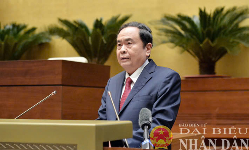 Chủ tịch Quốc hội Trần Thanh Mẫn trình bày Chuyên đề 2: “Về sửa đổi Hiến pháp và pháp luật; Phương hướng bầu cử Đại biểu Quốc hội khóa XVI và đại biểu Hội đồng nhân dân các cấp nhiệm kỳ 2026 - 2031". Ảnh: Hồ Long |