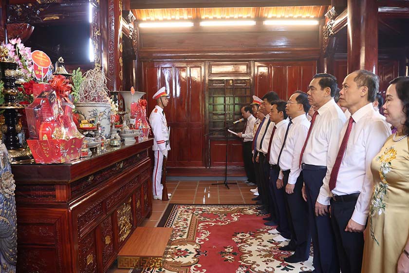 Đồng chí Nguyễn Duy Lâm - Bí thư Tỉnh ủy dẫn đầu đã đến dâng hương tưởng niệm Chủ tịch Hồ Chí Minh tại Khu lưu niệm Bác Hồ về thăm Hà Tĩnh (TP Hà Tĩnh) |