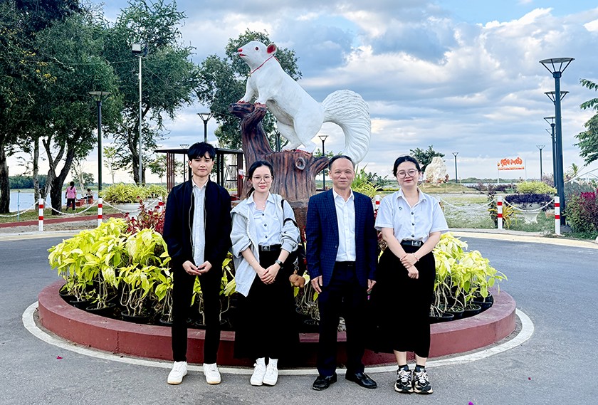 Tác giả (thứ 2 bên phải) và các sinh viên người Việt tại hồ Nong Han. |