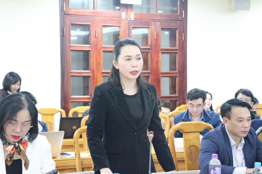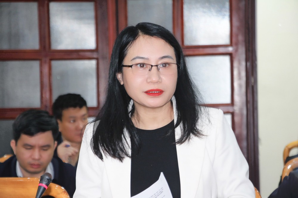 Trưởng ban Kinh tế - Ngân sách Hội đồng nhân dân tỉnh Nguyễn Thị Thúy Nga phát biểu tại cuộc họp. |