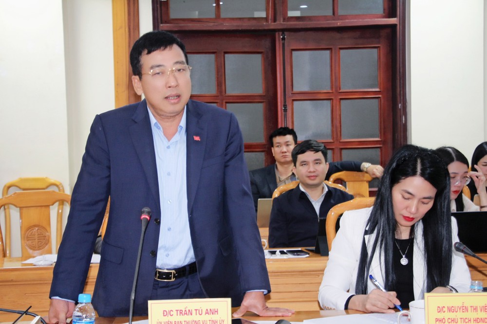 Phó Chủ tịch Thường trực HĐND tỉnh Trần Tú Anh phát biểu tại cuộc họp. |